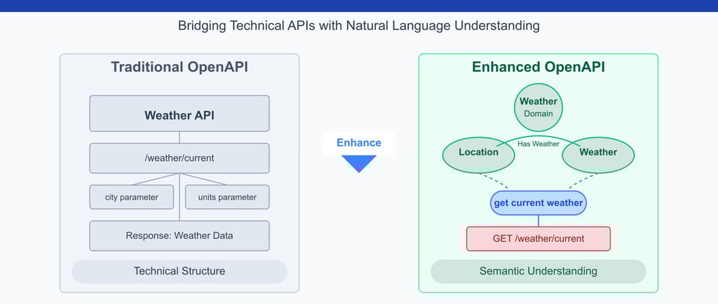OpenAPI Specifications (OAS) have become the bedrock of modern API development, providing a vital standard for describing and consuming APIs. As we look ahead to a future increasingly shaped by intelligent agents and natural language interfaces, it's crucial to consider how we can evolve our API specifications to meet these emerging demands. While the current OpenAPI specification excels in detailing the technical mechanics of APIs, a significant opportunity exists to enrich it with semantic understanding.